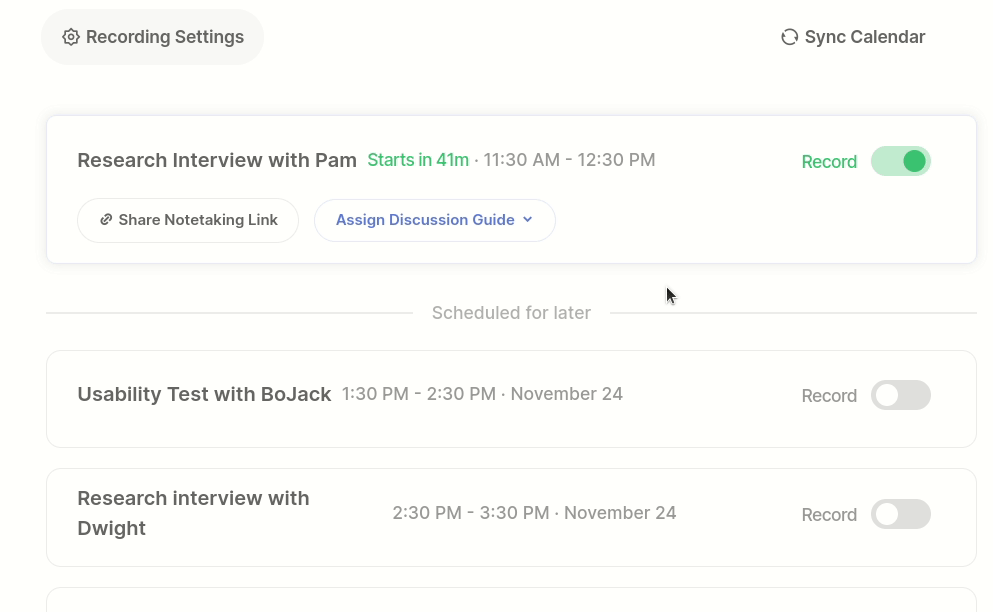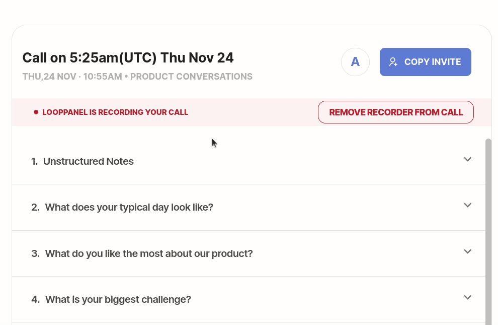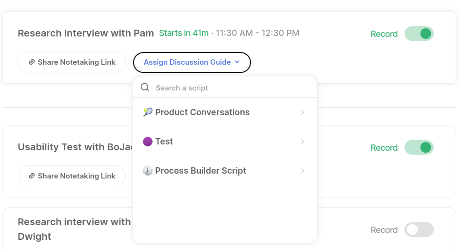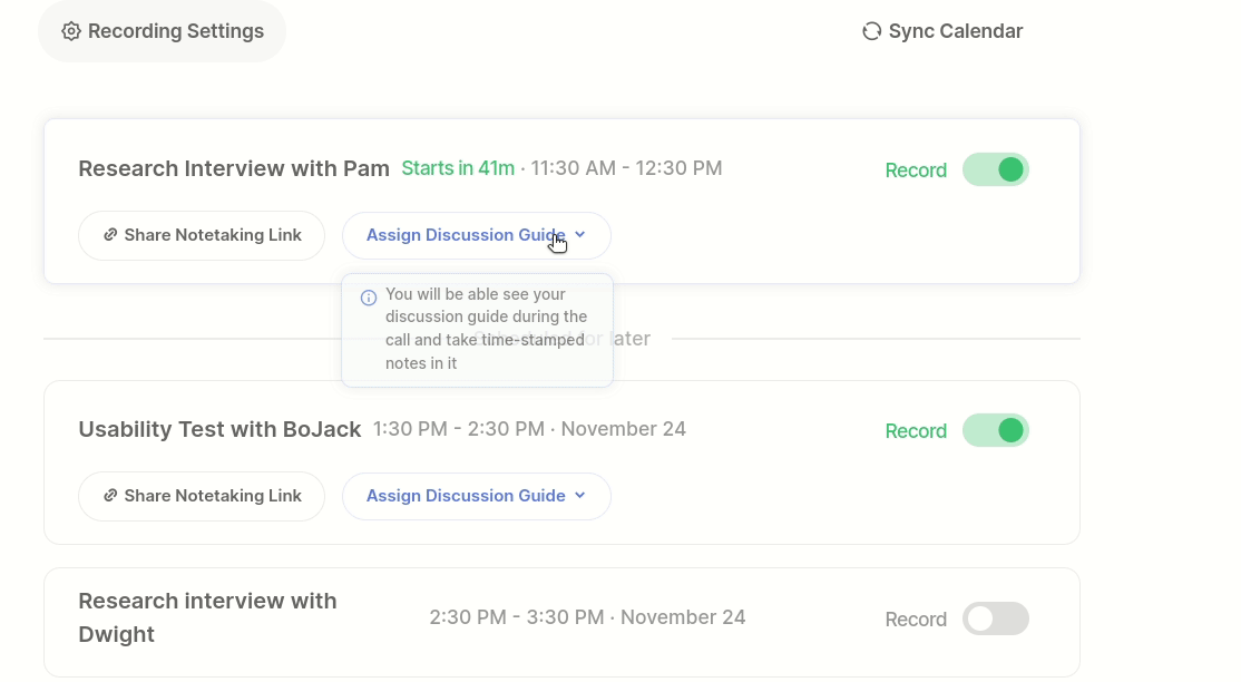 You can now assign discussion guides in advance to calls scheduled to be recorded by Looppanel from the calendar view. π